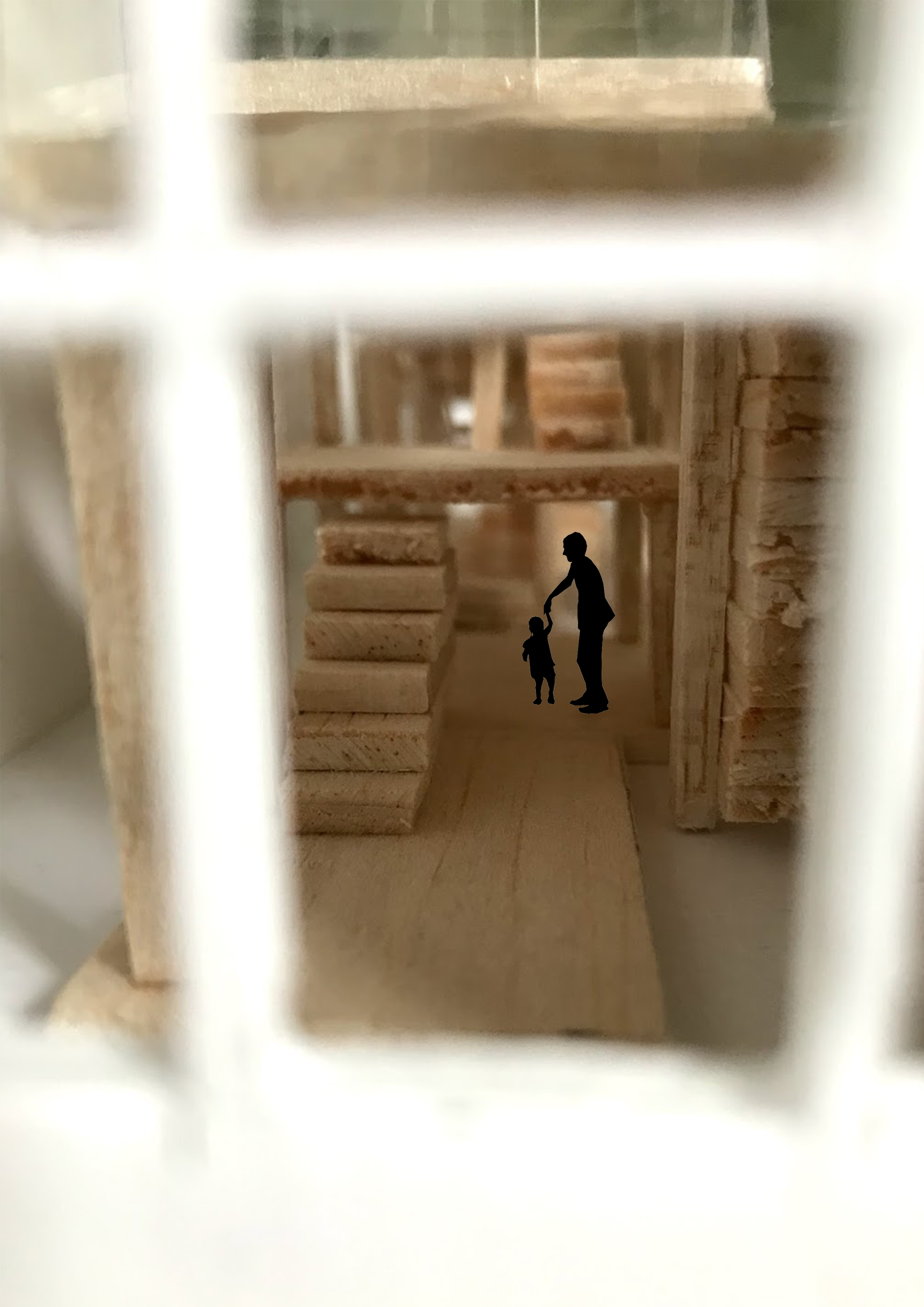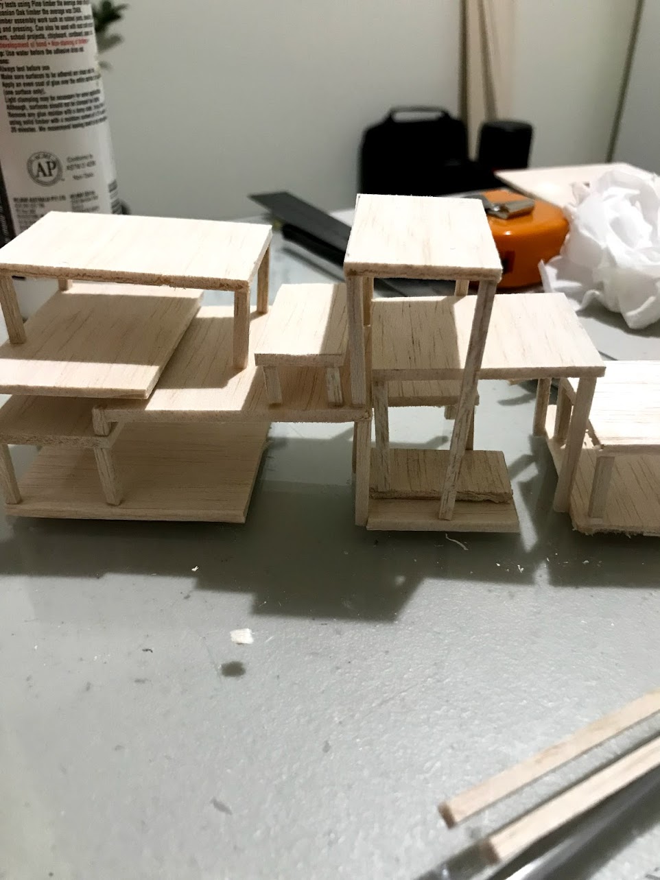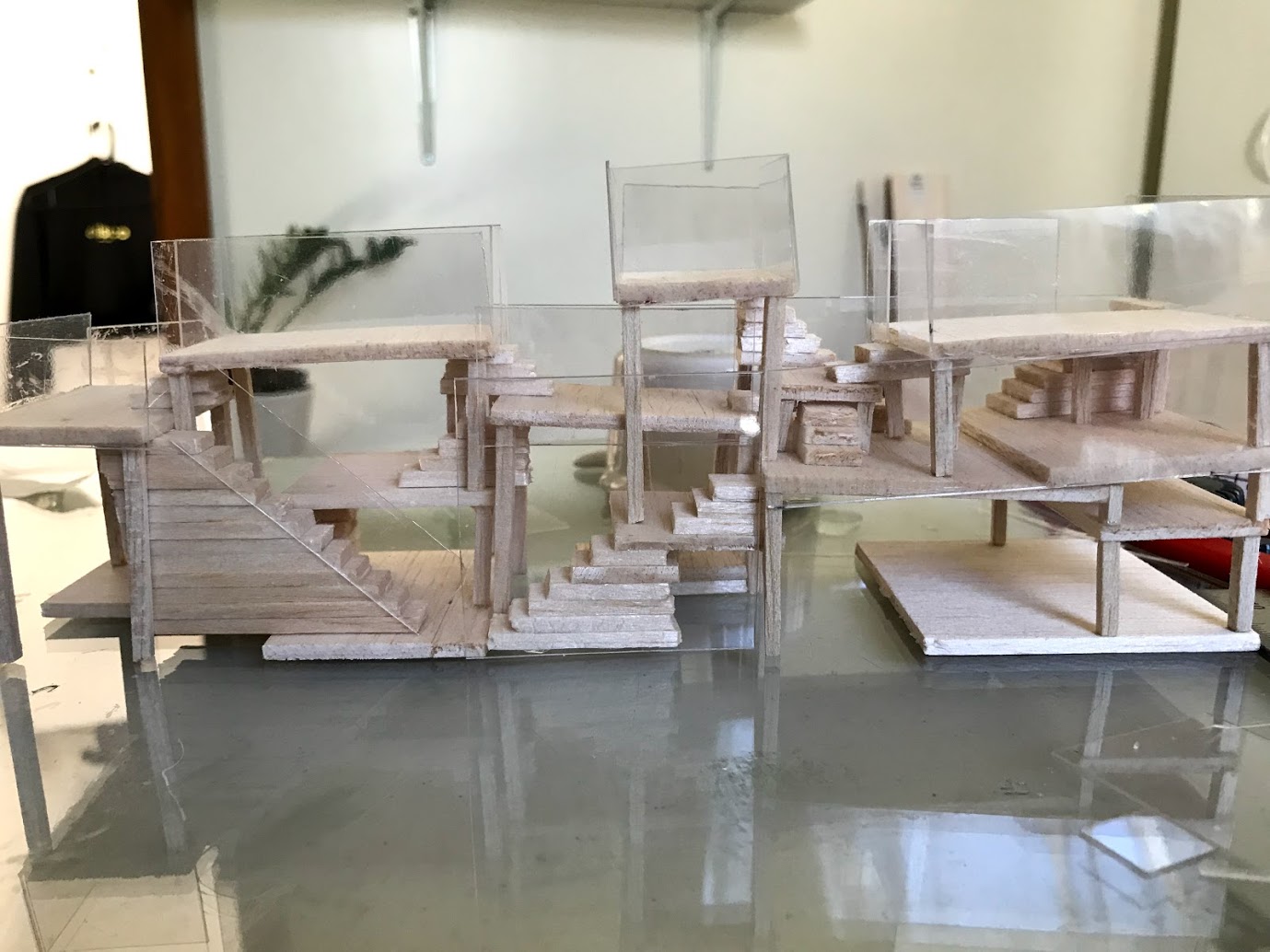 Since it was going to be a miniature building inside of a gallery i then added stairs and a transparent wall to represent glass for fragility.
