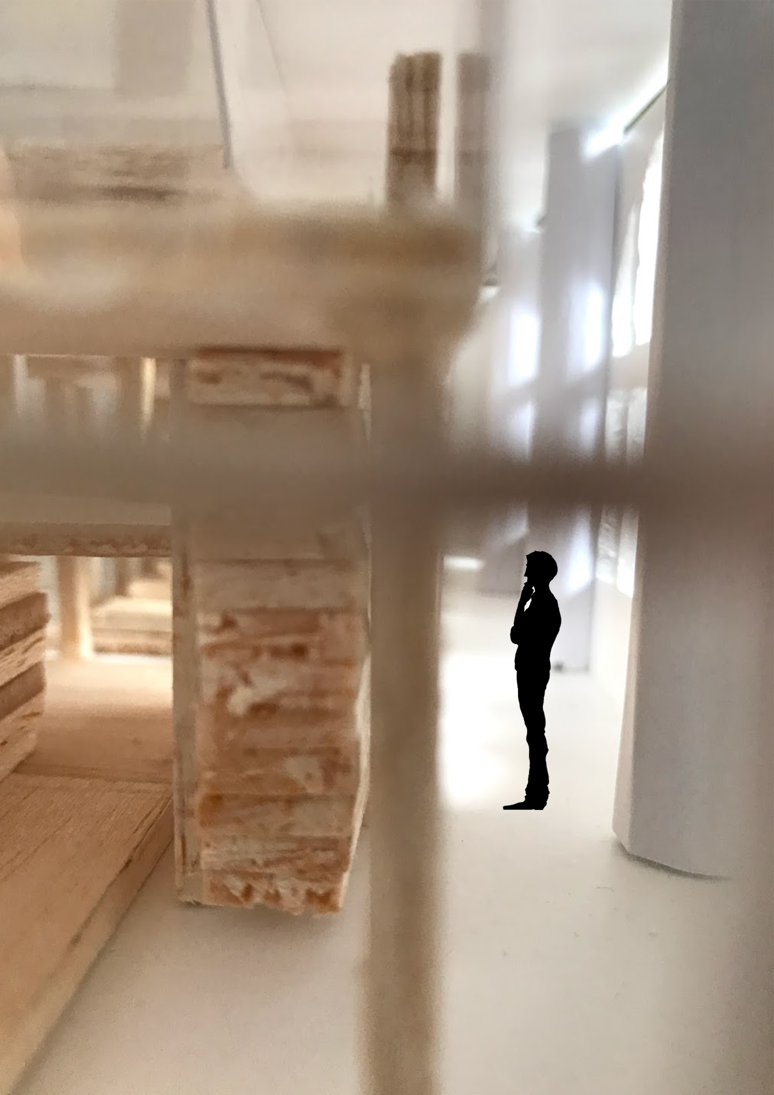 Before doing my actual model i decided to build it in digital first to see what i may add or may exclude in there to see what I prefer and what it may look like once i build it. As you can see above i just built a quick 3D model of my plan inside the gallery to give me an insight of my model. I chose to build my threshold as some sort of building with so many floors as i explained from my last project i tend to dream about me falling from such a high height, so in order to represent this i decided might as well build this miniature building with floors that fits inside the gallery space with no roof and the walls will be all glass. And since i am building a threshold that is to be placed inside the gallery this could represent my thoughts and dreams as it is inside.