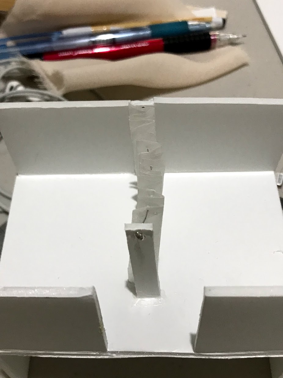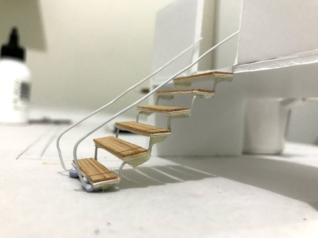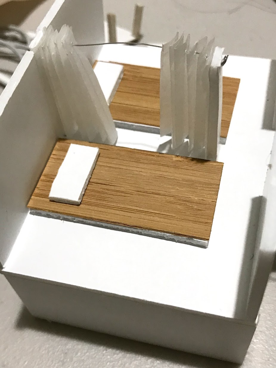 To make the stairs i used a veneer, cardboad and wire. Initially i made the stairs out of foamboard stacked together in which it did not look nice for me so i ended up having to change it again.