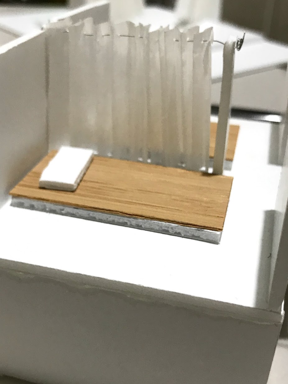 Images below shows my 1:20 model of my sleeping platform without the walls in front to make it convenient to see the inside