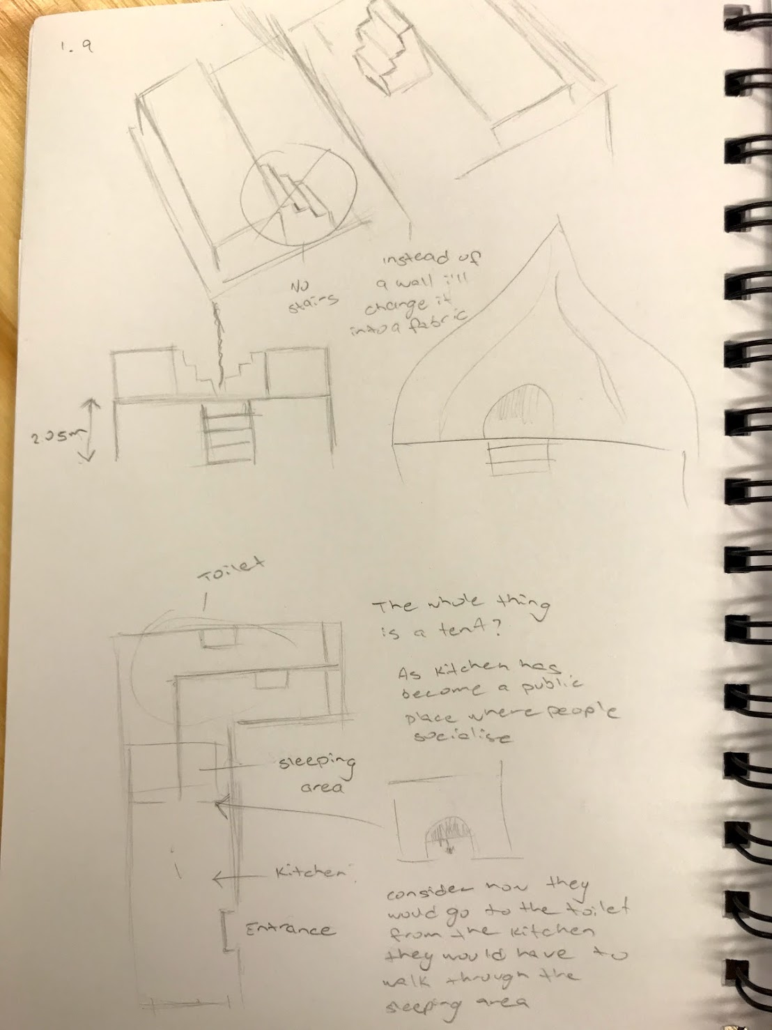 Images above shows how my plan progressed throughout the images as i sketch my ideas for my sleeping platform.