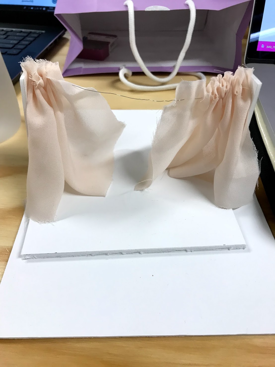 In the end i ended up having to change the material for the curtains as the fabric that i initially used didn’t looked nice for me, and as it couldn’t hold itself up this can clearly be seen from the wire as it is bending. However in the end the material that i used still represent fabric.