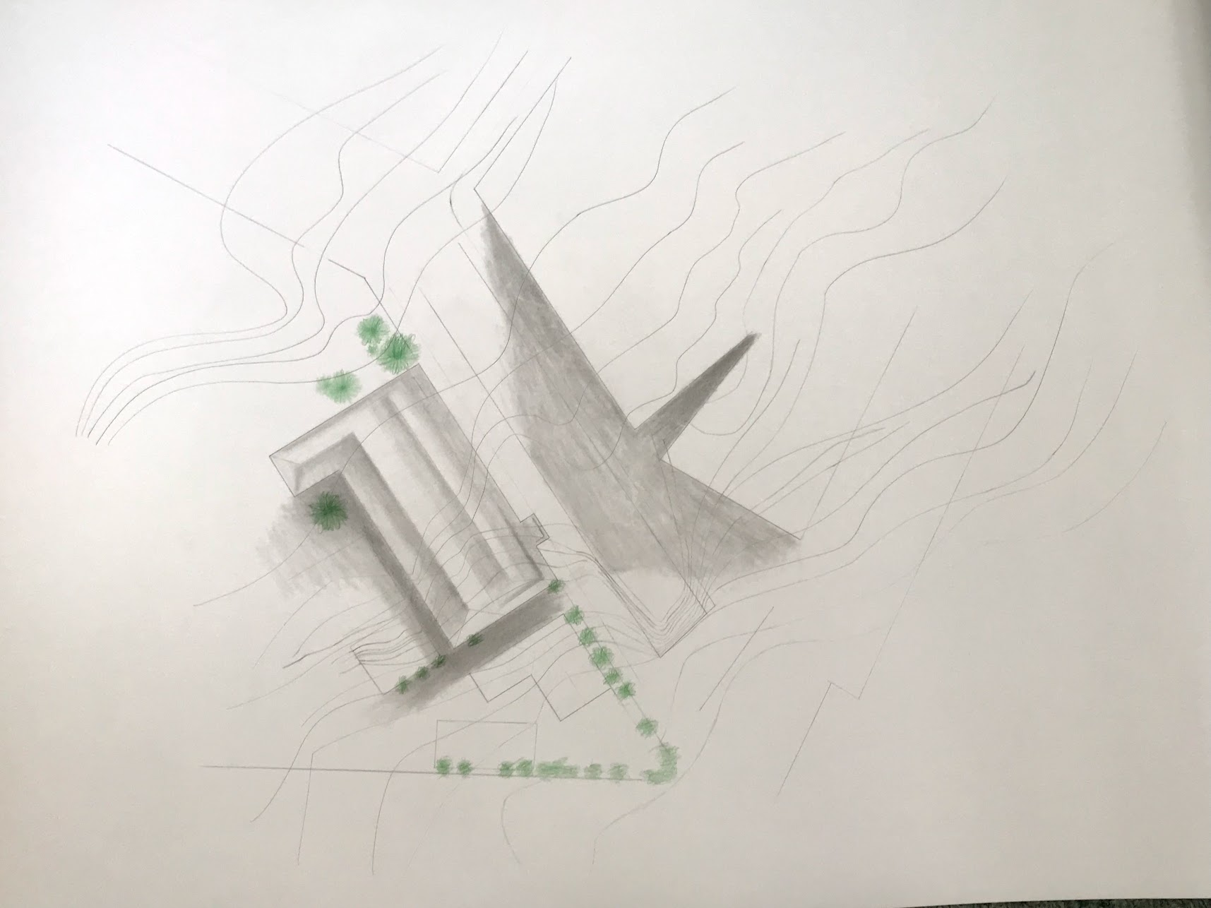 Above shows my A1 site plan, where i have shown where the shadows are located within the gallery and the buildings infront of it if it may have an effect to the lighting of the gallery.