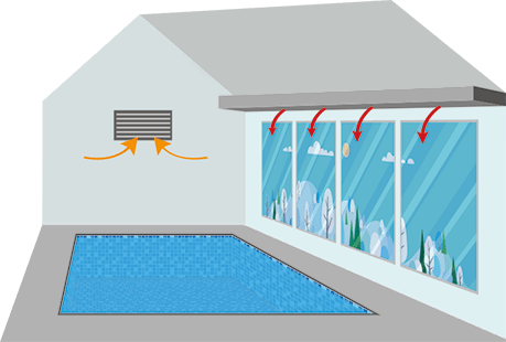Air circulation and distribution: Air circulation in a pool room is important, because air that moves does not condense as easily as stationary air.