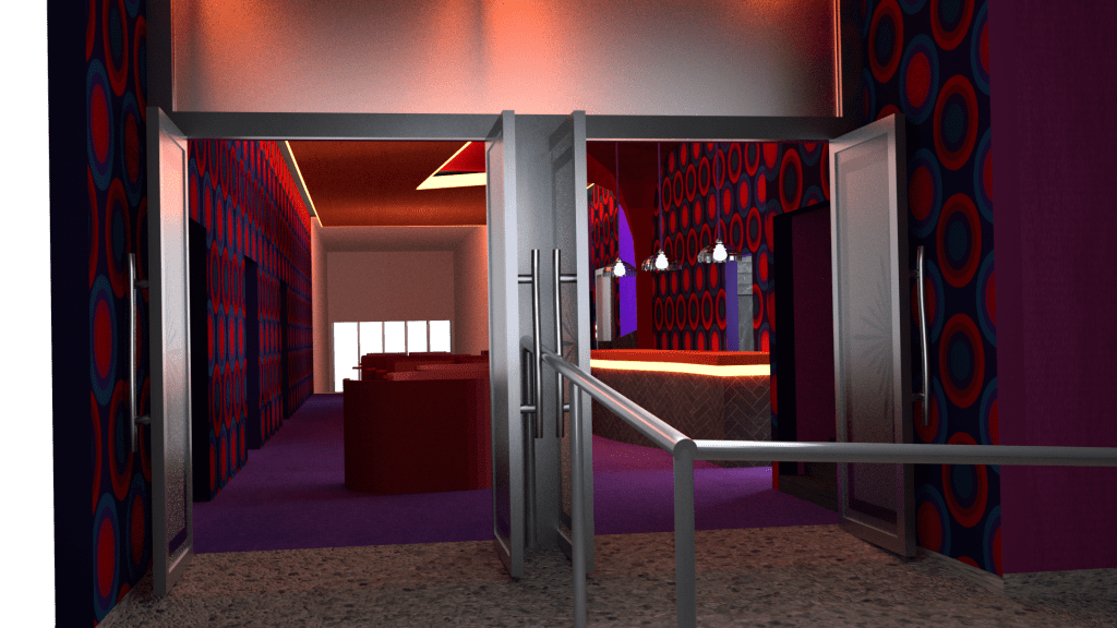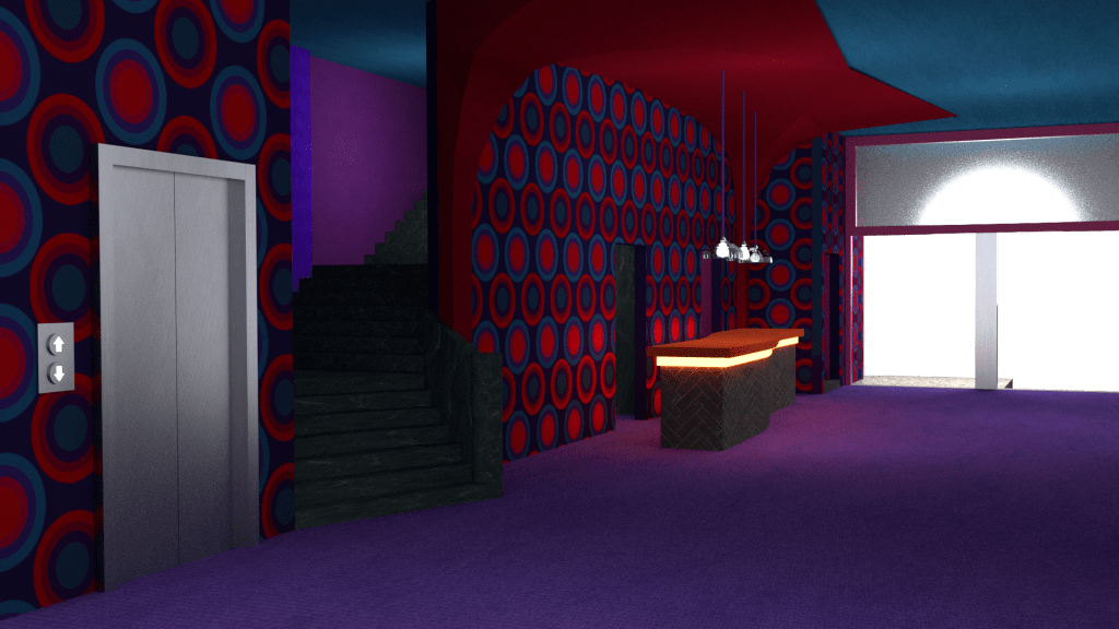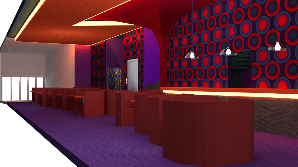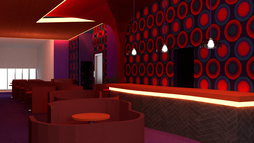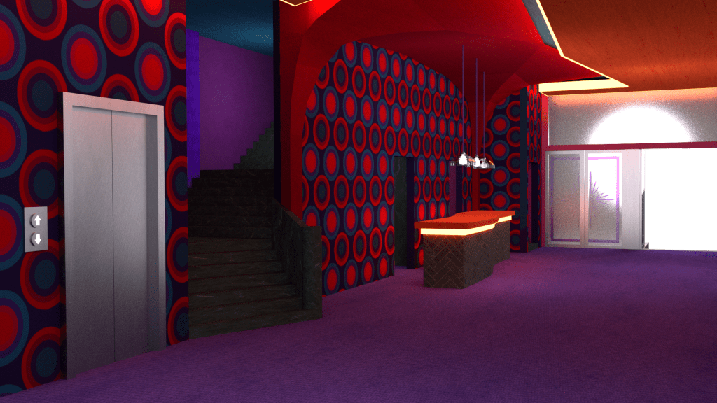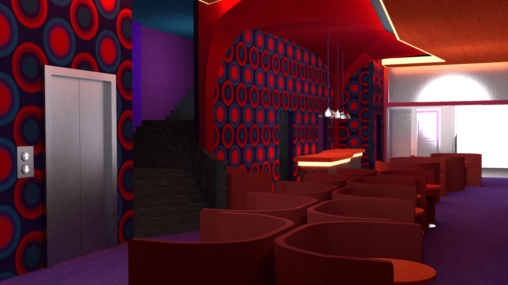 Elevator, Bar, Overhanging lights and Painting the other walls with colourful colours