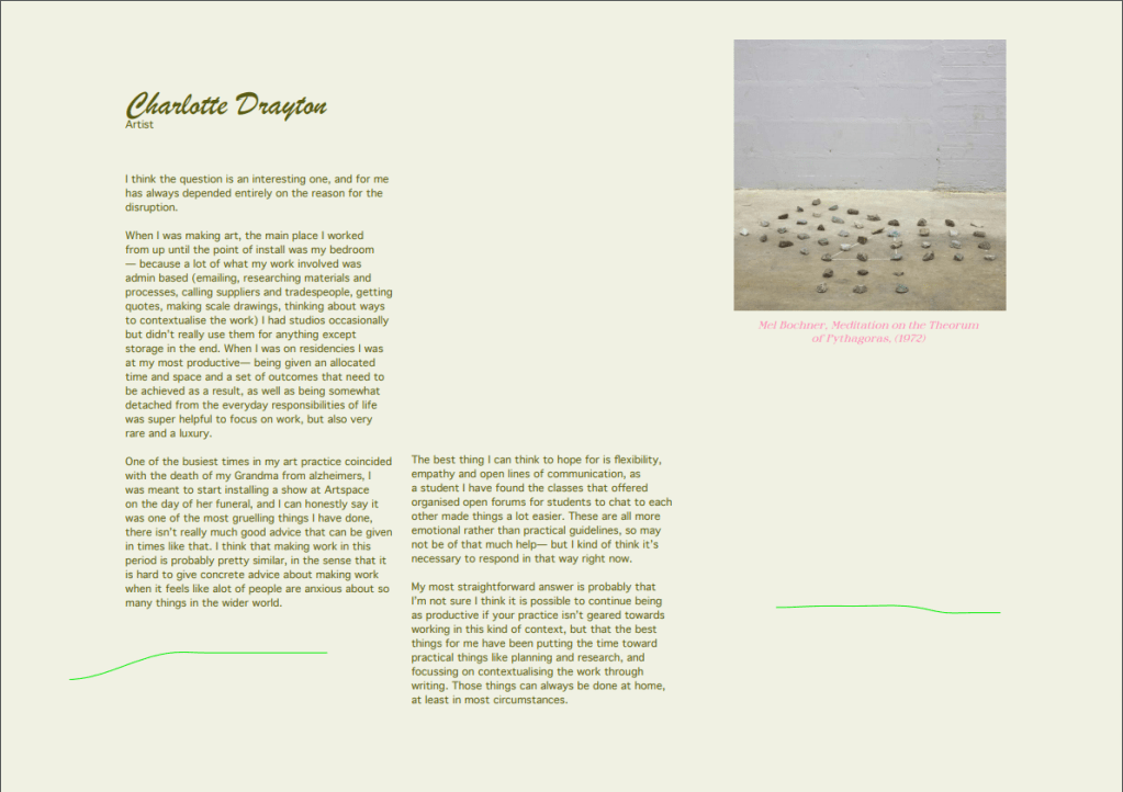 After reading through “Working with what you’ve got” I found that Charlotte Drayton and Olivia Webbs’ ways of working resonates me by how Olivia maintains a balance home and projects, while Charlotte works mainly at home as most of her equipments are located at home.
