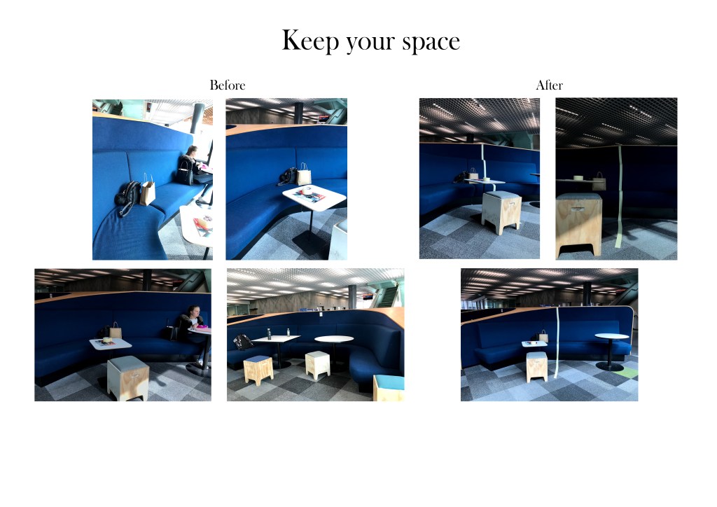 Two of the people that I have interviewed during/ about my intervention said that before the intervention they said that it was a good idea to have some sort of divider between other people’s personal spaces. As other people would also lay down to take a rest while waiting for their next classes, I also can agree that sitting with someone that would also make me or other people feel awkward sitting with. But someone also said that it also felt weird for them knowing that there is a divider between other people when using the space.