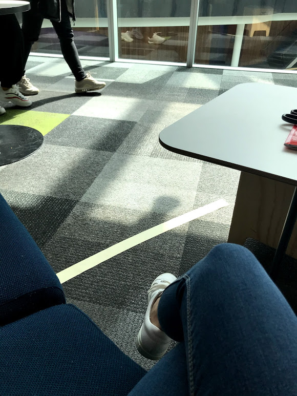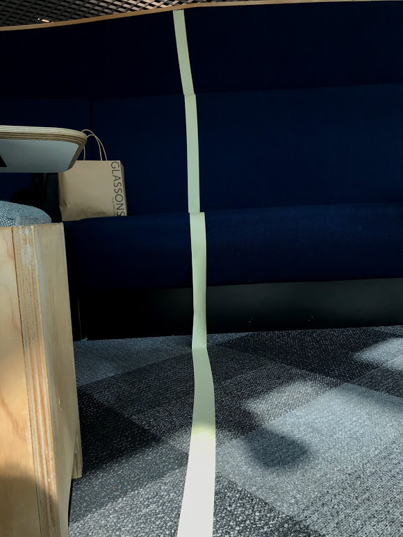 Therefore, for my intervention I wanted to make create an intervention where students can have their own personal space from other students/ people that uses the space making it more less awkward for some people. To achieve my intervention, I am planning to make some sort of a boundary to separate people’s personal spaces between other people. The intervention creates this different feeling between two people compared to before, as they would be oblige/ instinct not to cross their boundary line, this way it’ll assure that the other person using the space will surely have their own personal space. To do this I would simply just need any sort of tape for the boundary line (taping down from the headrest straight till all the way down to the floor dividing the couch space) and scissors.