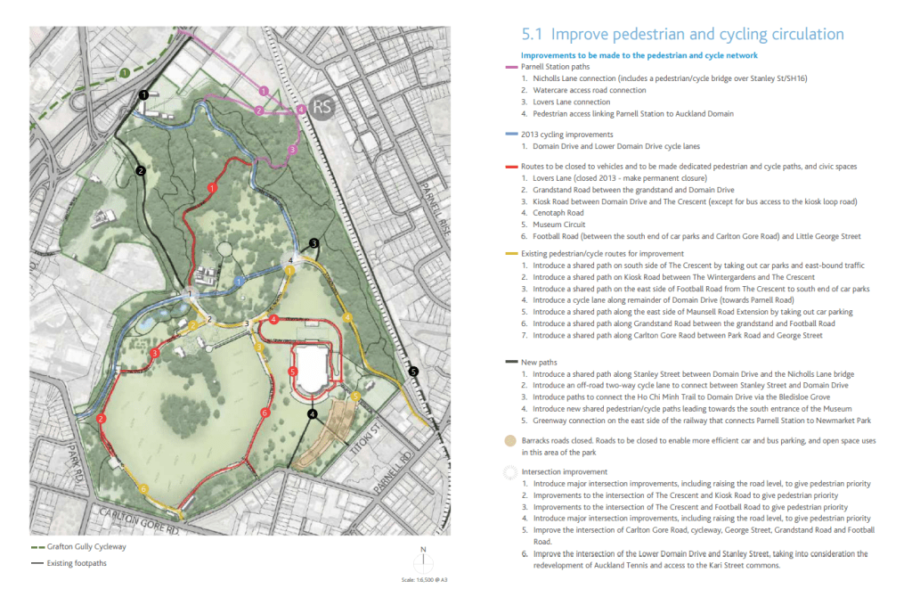 In 1940, to commemorate the founding of Auckland 100 years earlier, a new road was planned for the Domain. “Centennial Drive” was surveyed and trees were planted along its length, but it was never formed as a road; it is now a walkway between the duck ponds and Stanley Street.