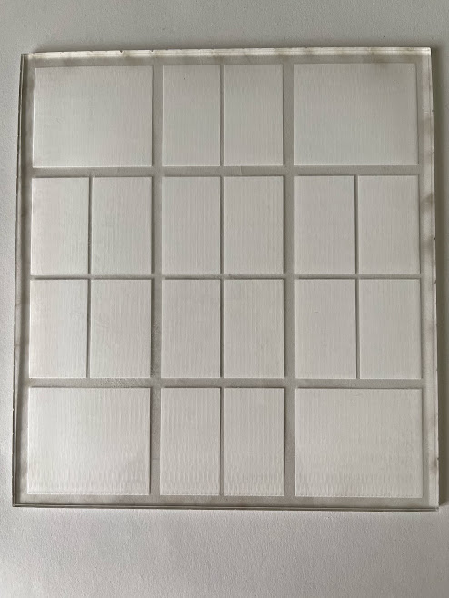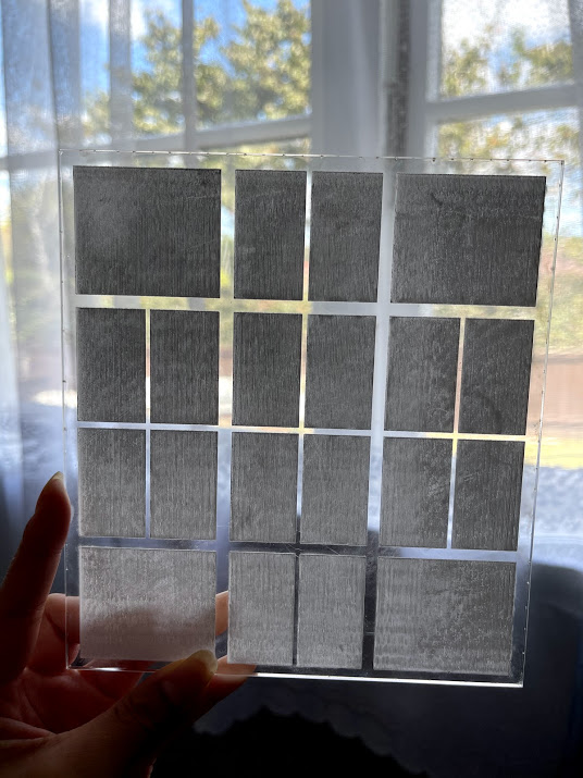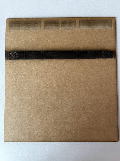 Using the scrap material that the lab has I first found this polystyrene clear plastic that looks very identical to the actual glass window from the glasshouse especially with the condensation on the window making it barely visible for people to see inside the glasshouse. However laser cutting this was difficult as it was plastic therefore I would have the tendancy to bend when it comes in touch with hear, ruining the pattern I have created. The second material was cardboard, I liked how you can control how much power you give to the machine causing this weird pattern that you can see through it and see the silhouettes. Last and finally acrylic for the transparency purpose and wouldn’t bend unlike my first experiment.