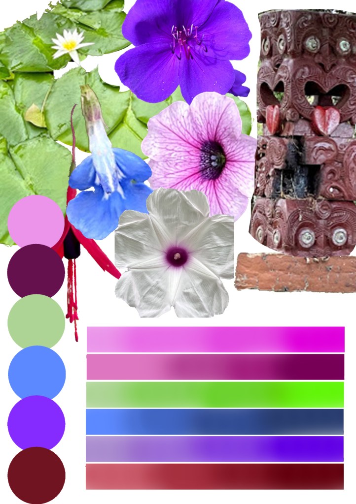 2. For concept 2 i’m going to manipulate with colour palette of the glass shelters, using the images I caught from the site. Below I made a colour palette of the flowers that I found in the site as it would make sense to use the colour of the flowers as my reference for the colour of my shelter.