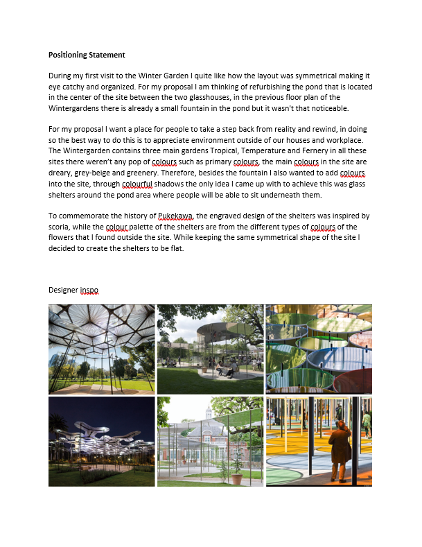 For my proposal I wanted to design a place for people to take a breather from reality and appreciate the outside world, to do so I will be creating coloured glass shelters to project coloured shadows onto the site.