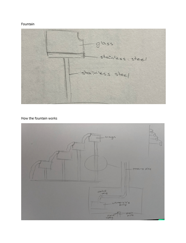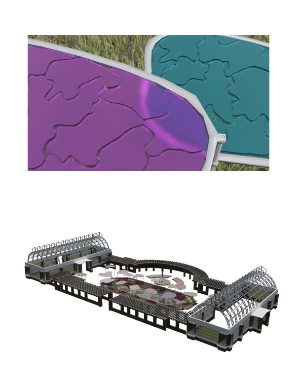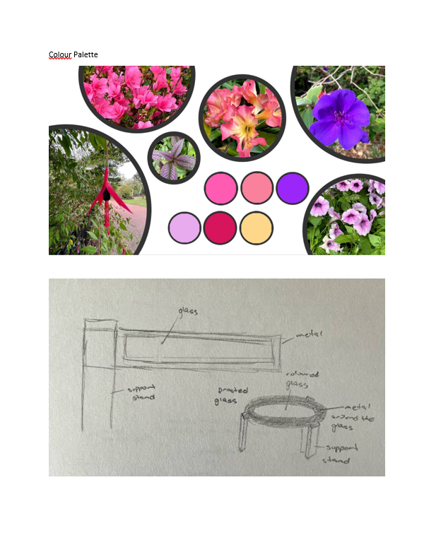 The coloured artisan sky glass is where I wanted to apply colours into the site. When i visited the site i’ve noticed that the only colours that can be found in the three main gardens were greenery, while other colours such as flowers can be foung outside the site.